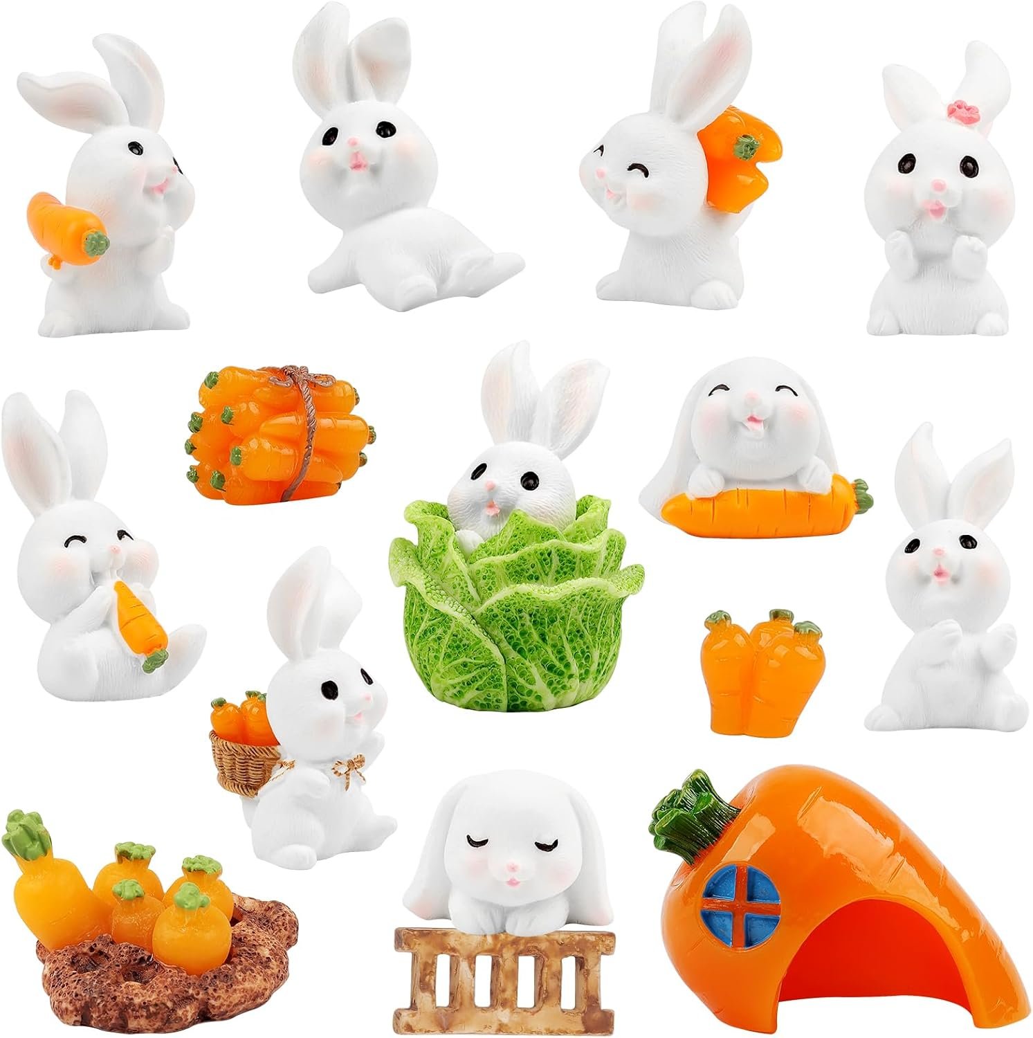 Wlicon 16 PCS Mini Easter Bunny Figurines Mini Resin Rabbits Easter Tiny Resin Figurines Party Decoration for Spring Festival Celebration