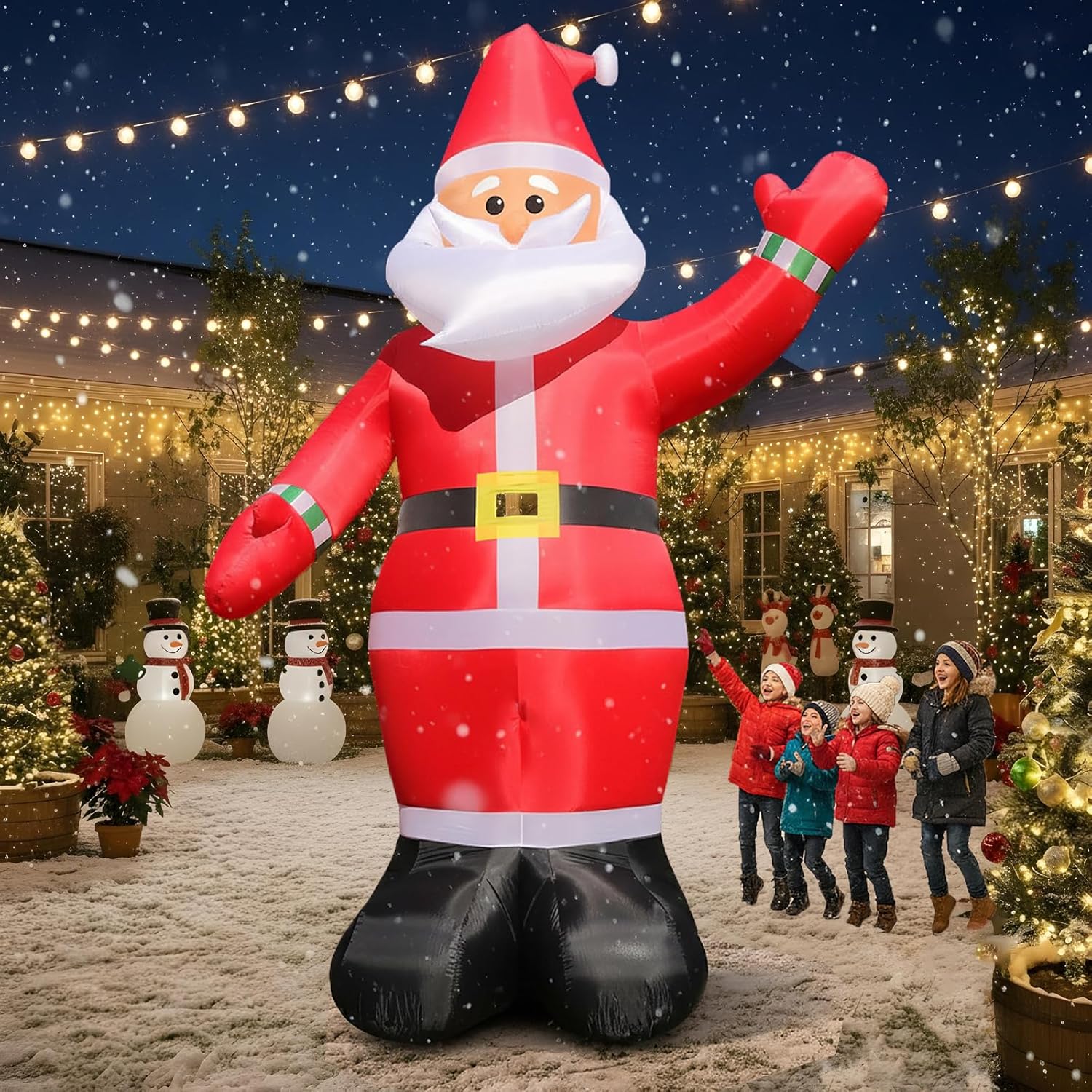 🎅 Classic Santa for Christmas Decor – Our 10-foot giant inflatable Santa Claus waves to guests with a warm, welcoming smile! Built-in bright LED lights fill your yard with festive cheer, creating the perfect Christmas Eve atmosphere. Designed to shine in any setting—indoors or outdoors, day or night, rain or snow—this stunning decoration guarantees a beautiful and memorable holiday season.