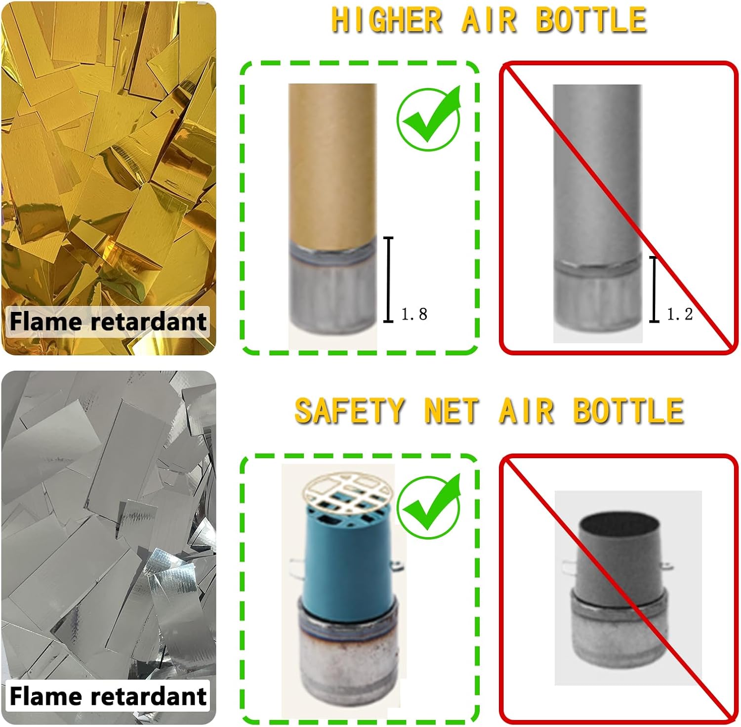Important Remind: Please read the direction carefully. When using this confetti poppers, please hold it vertically facing the sky at all times—do not angle it in any direction. Under no circumstances should you point it at people, animals, or any objects