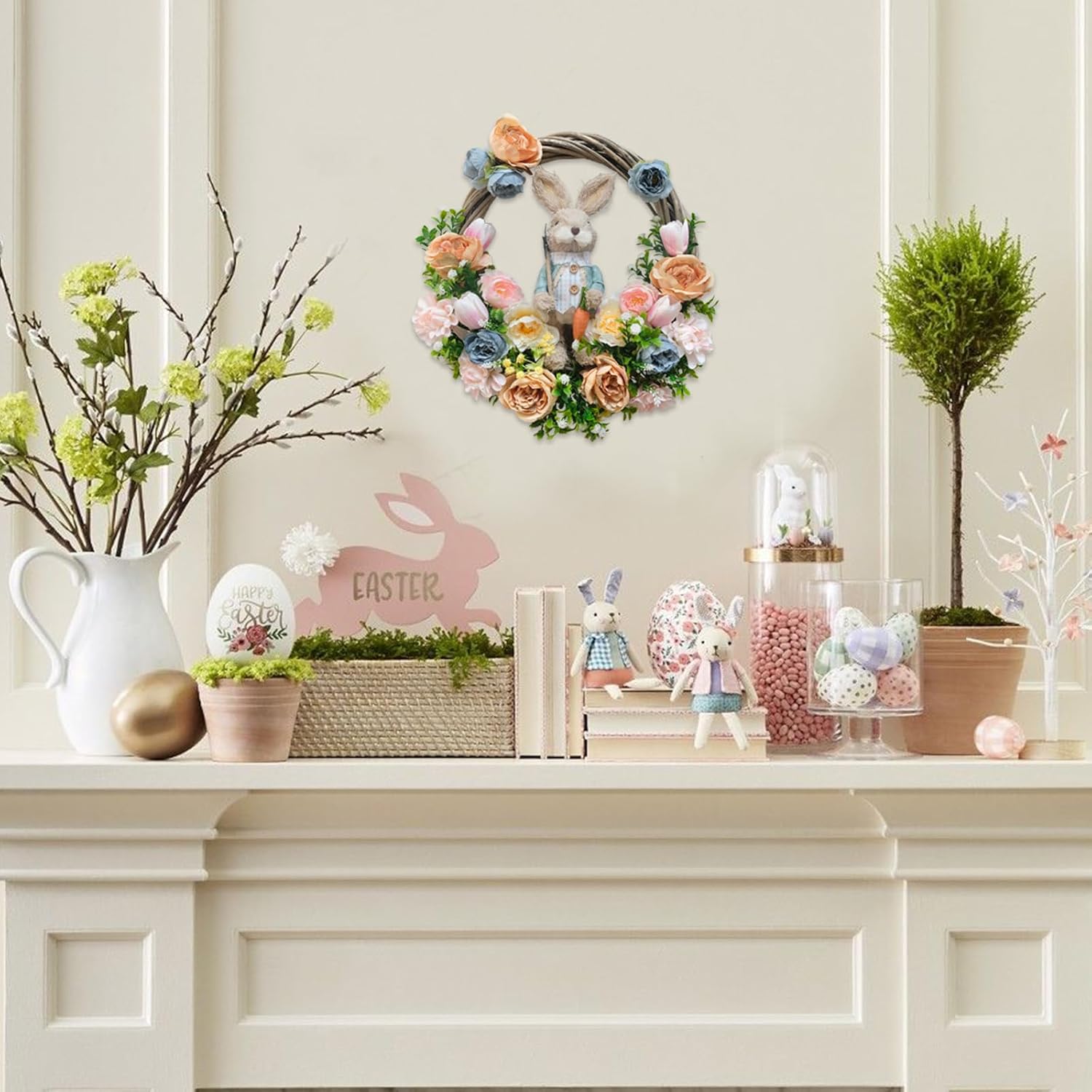 [Farmhouse Style Wreath]: This rustic-themed wreath is not only suitable for Easter but also perfect for spring, summer, or everyday use. Whether used for home decoration or in shops, schools, cafes, or florists, it stands out beautifully.