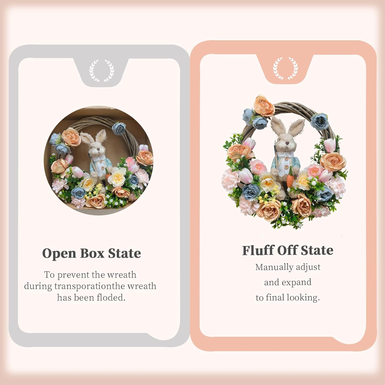 [Shaping Required]: Please use the wreath indoors or in sheltered outdoor areas. During transportation, the wreath may become somewhat disorganized in its packaging. Please spread out the flowers and reshape the wreath to its best form, and you will have a one-of-a-kind decorative treasure.