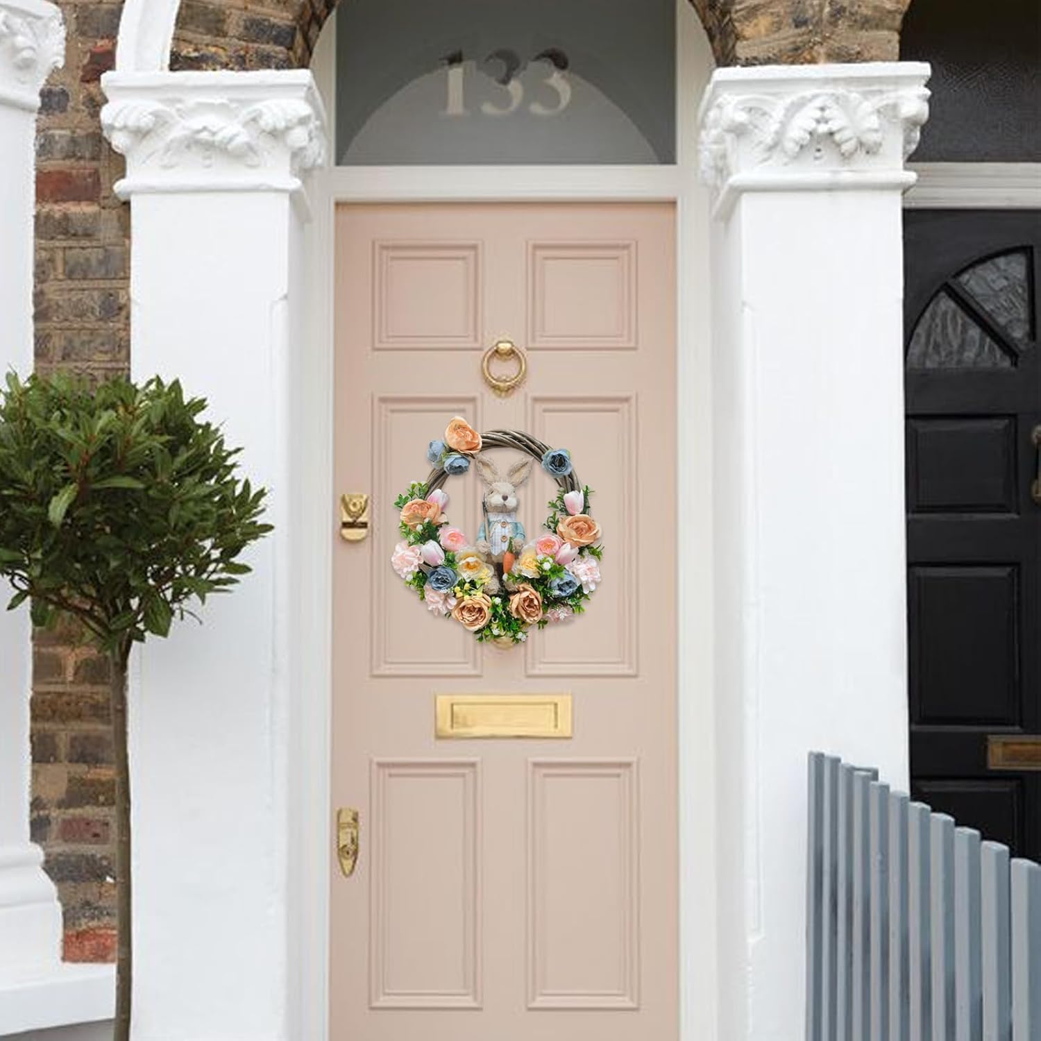 [Easter Front Door Wreath]: This wreath is handmade with flowers and green leaves in a variety of colors, adorned in the center with a lifelike little rabbit. If you’re looking for a unique and enchanting holiday decoration, this wreath will be the perfect choice.