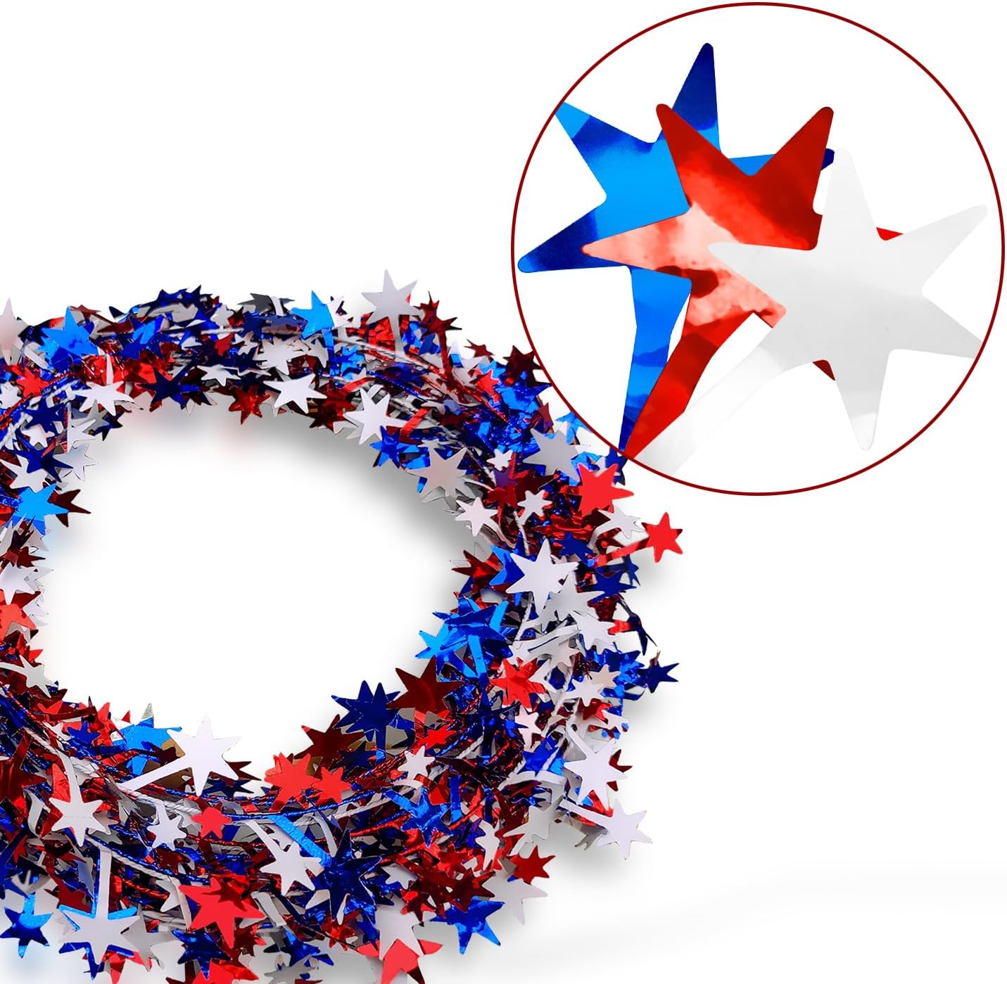 Applicable occasions: These foil star garlands are great for wreath making, gift wrapping and other DIY craft projects, widely used for patriotic party, independence day, veterans day, memorial day, flag day, 4th of july celebrations and more.