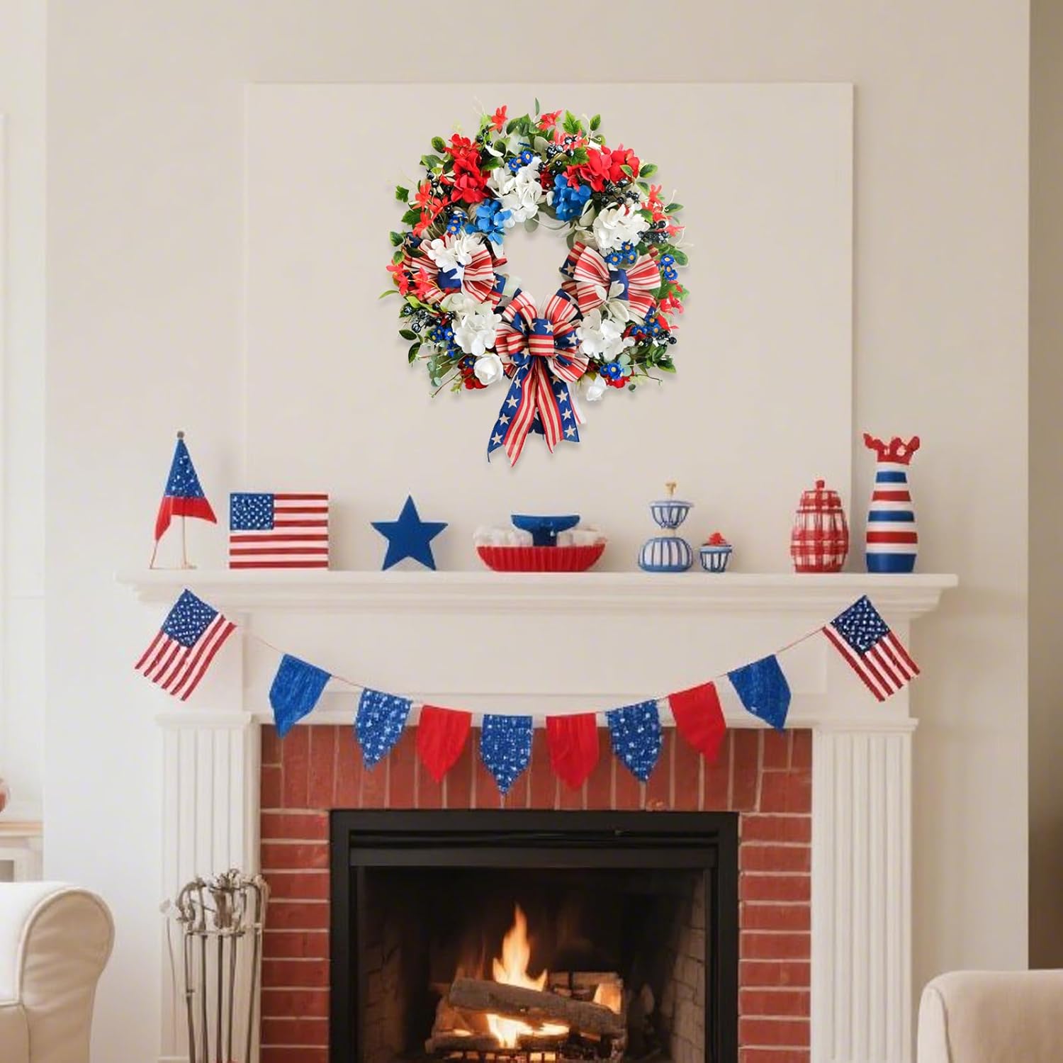 【22-Inch patriotic wreath】When fully expanded, the outer diameter of the wreath can reach 22 inches, presenting a farmhouse – natural style. This size and style make it suitable for both hanging on the front door to welcome guests with enthusiasm and being placed as a central decoration at event sites. It can shine brightly in important festivals such as National Day and Memorial Day