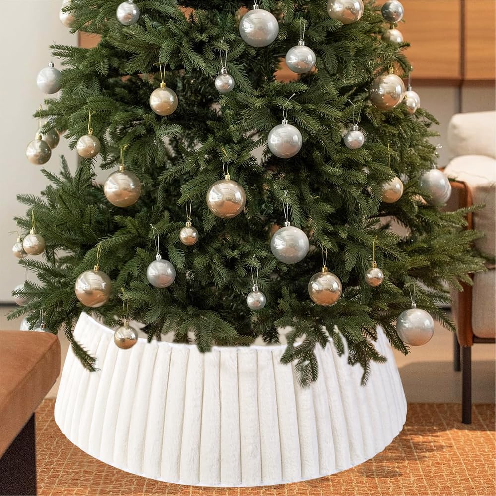 I absolutely love this 28-Inch Christmas tree collar. I’ve used tree skirts for years, and they always look messy, get wrinkled, and collect pine needles. This collar solves every single one of those problems beautifully.The plush faux fur is luxurious and high-quality. It genuinely looks and feels like a blanket of fresh, pristine snow gathered around the base of the tree. The texture is soft, thick, and instantly elevated our entire living room decor.It’s large enough (28 inches) to hide the bulky metal base of our artificial tree perfectly, and the striped detail adds a subtle, chic touch that makes it look more tailored than a plain white collar. Assembly was simple, and it sits perfectly straight.If you’re looking for a sophisticated, hassle-free alternative to a traditional tree skirt that brings a cozy, winter wonderland vibe to your home, look no further. This fur collar is a definite five-star holiday upgrade.