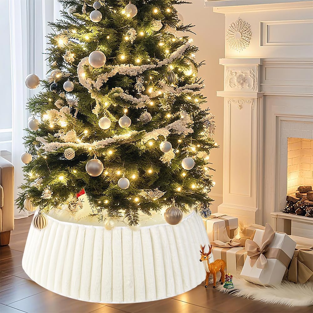 Best Choice: We offer a variety of color options to perfectly complement your Christmas decorations, adding an elegant and warm festive touch to your home. This white plush tree collar is not only the top choice for Christmas tree decorations in homes, gardens, campuses, shops, offices, supermarkets, and hotels, but also makes the perfect Christmas present for friends and family.