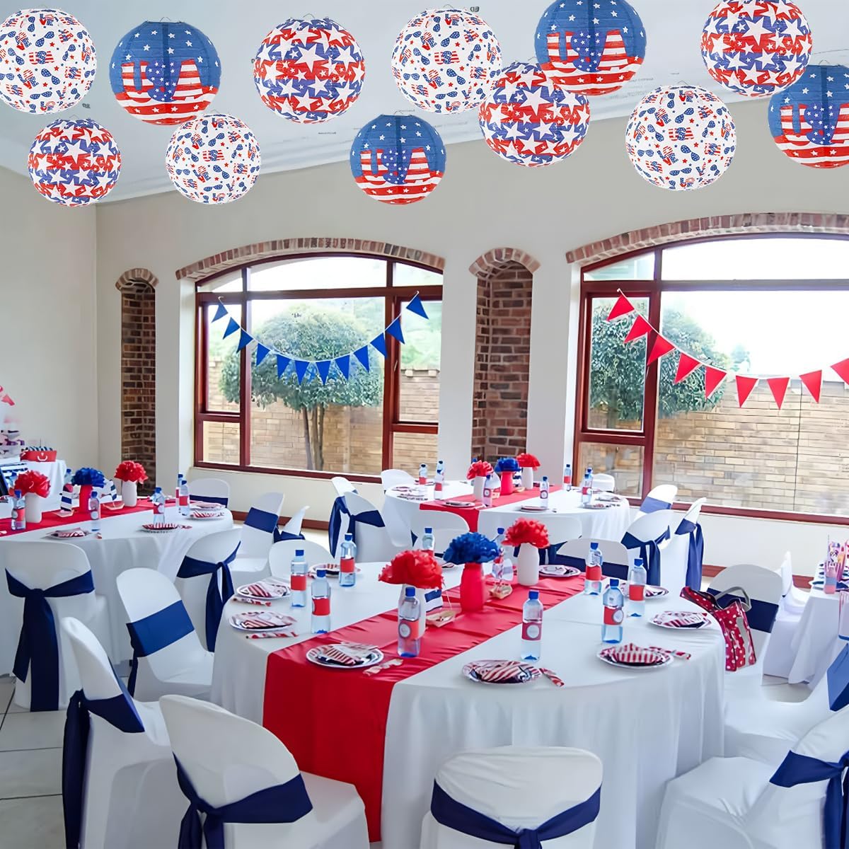 Paper Lanterns Sizes: The set includes 12 pieces paper lanterns in 8 inch sizes, allowing you to create a visually appealing display. The design of the paper mixed with a variety of iconic Independence Day patterns will add a sense of festive feel to your party