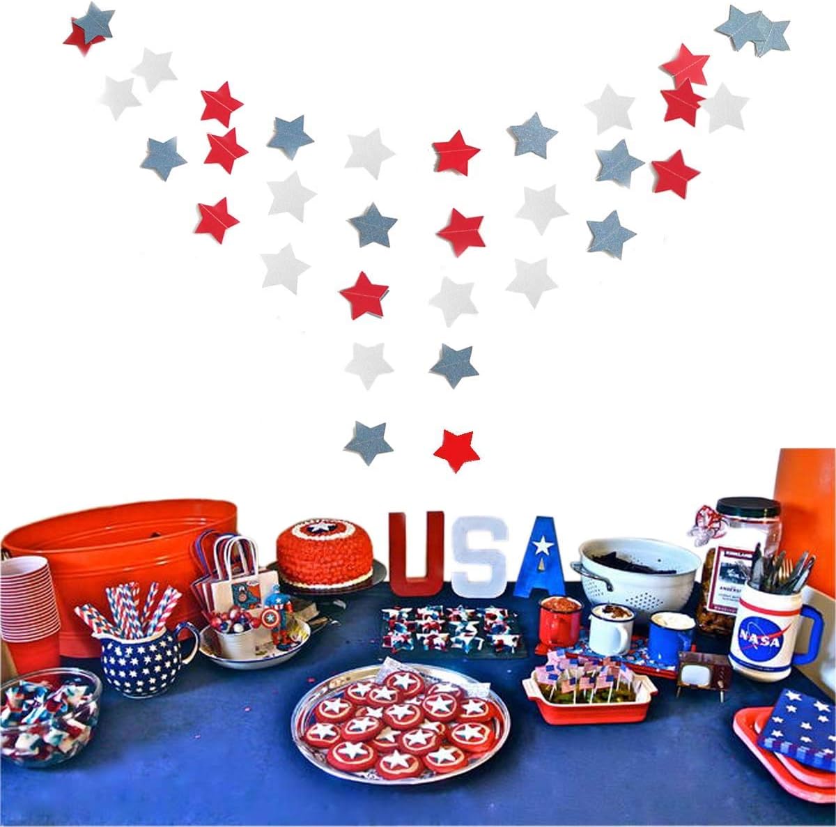 【Wide range of applications】Red, white and blue to be the same color as the USA Flag color, This patriotic star streamers garland is really a perfect decoration for Independence Day, Memorial Day, Veterans Day, Labor Day, Flag Day, and other patriotic holidays. You can also use it for wedding, birthday party, baby shower, american captain theme party, celebration, or other on-site