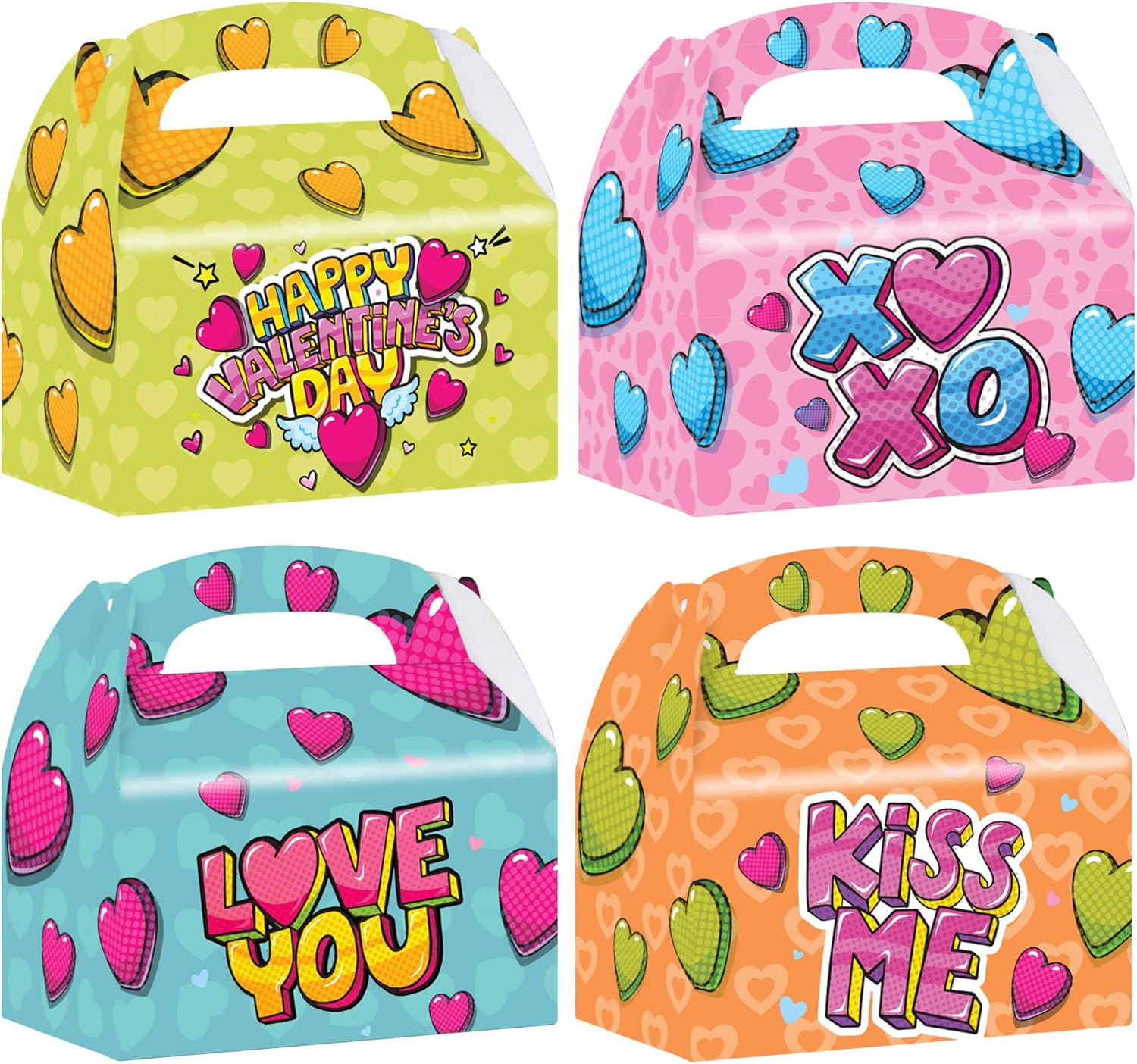 KIDS WILL LOVE THEM: Just what you need to dish out all those Valentines gifts! This pack comes with a SET OF 12 Valentines treat boxes in 4 vibrant designs. Use them as Valentines party favor bags to carry all that candy and haul those goodies.