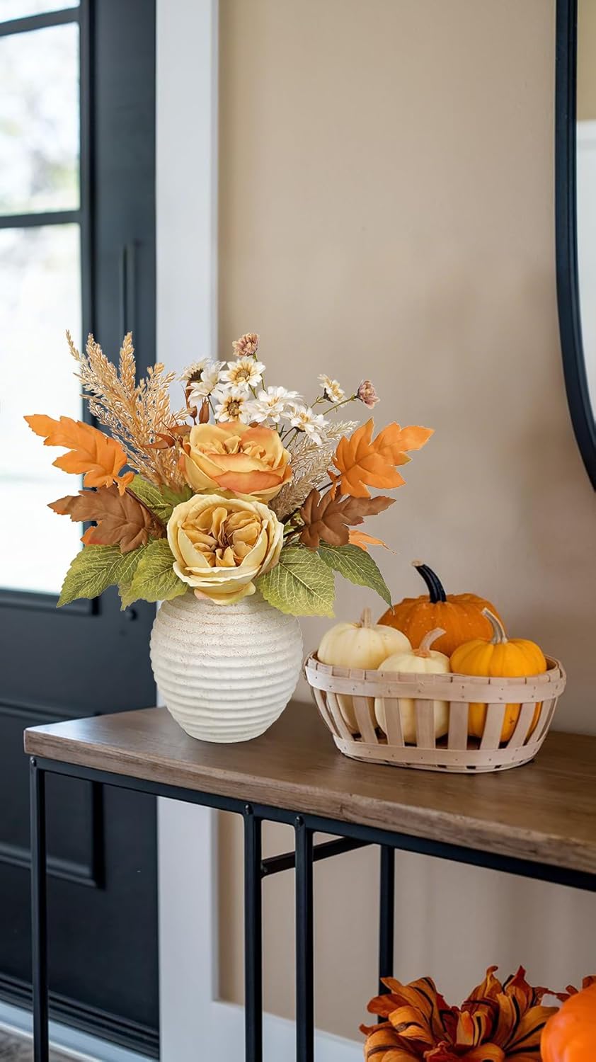 Perfect Table Centerpiece Size – With a total height of 13.7″ (35cm), this autumn floral arrangement is the ideal size for dining tables, coffee tables, mantels, or entryway displays without taking up too much space.