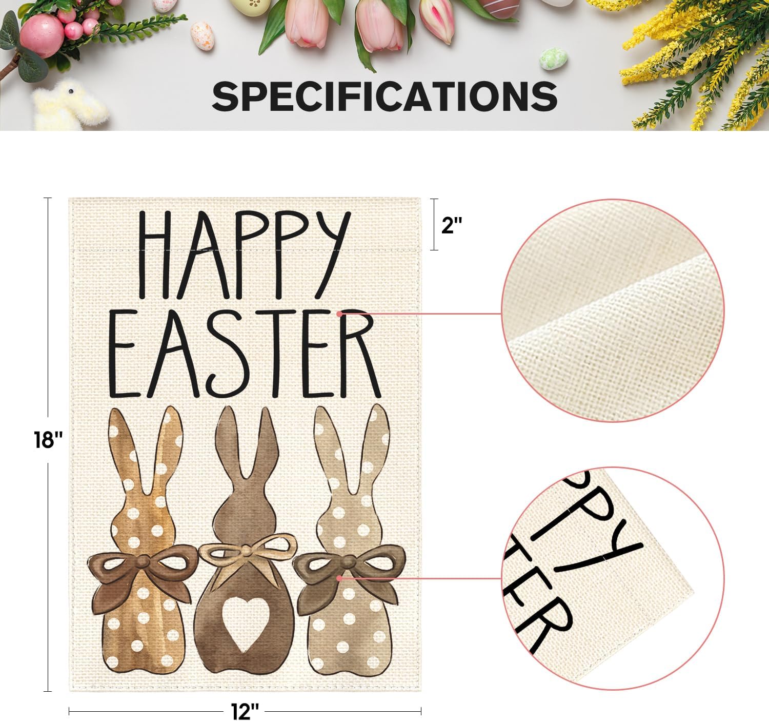 AVOIN colorlife Happy Easter Polka Dot Rabbit Garden Flag 12×18 Inch Double Sided Outside, Love Heart Bunny Bow Yard Outdoor Decoration