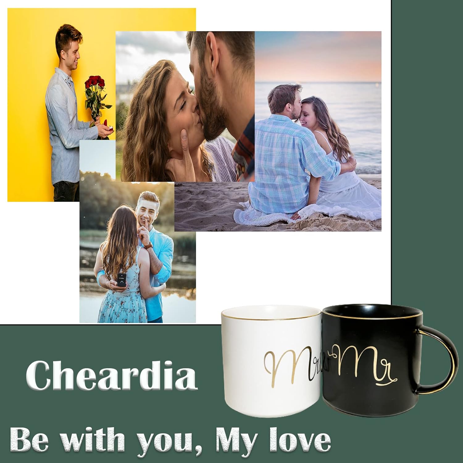 Cheardia 12 oz Mr and Mrs Mugs, Ceramic Coffee Mug Set Engagement Gifts for Couples, His and Hers Mugs for Bride and Groom, Anniversary, Valentines, Bridal Shower, Wedding, Black & White