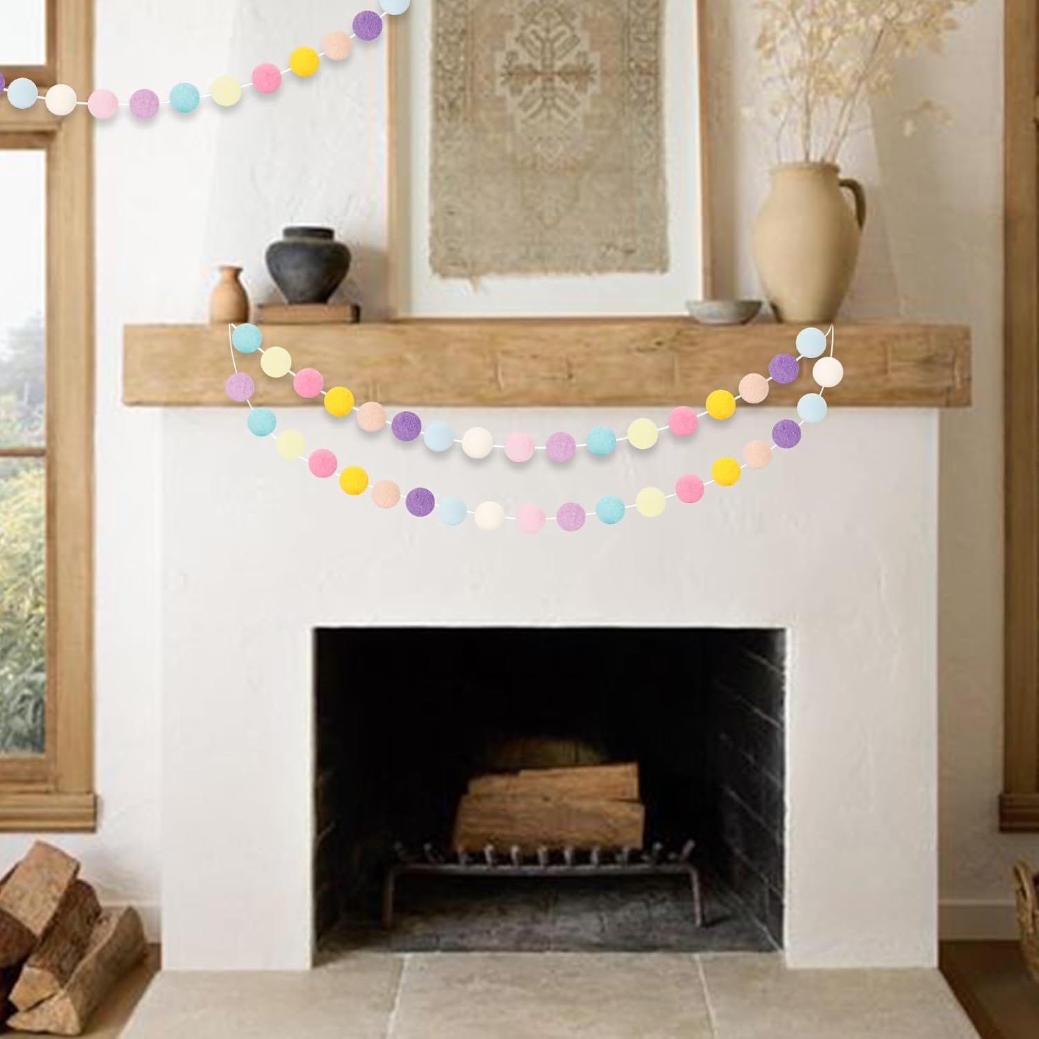 1.2″ Large Pastel Pom Pom Garland Hanging Easter Decorations Indoor Home Decor for Living Room Wall Classroom Christmas Tree, Cute Rainbow Colorful Felt Ball Garland Baby Shower Birthday Party Supplies
