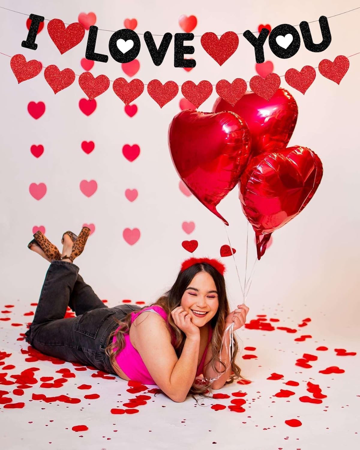 MATERIAL: These Red Black I Love You letters banners are crafted from high-quality paper with glitter, making them wear-resistant, reusable, lightweight, and resistant to bending. The letters are sufficiently large and beautifully colored, providing an attractive and sparkling appearance.