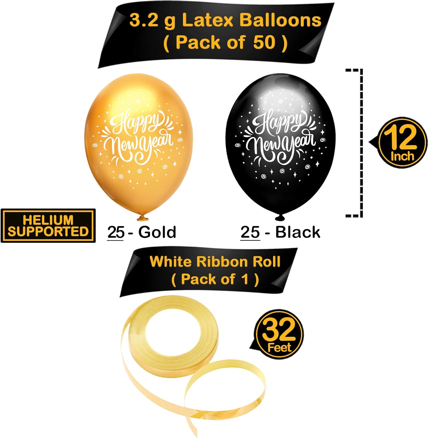LARGE SIZE : PACK OF 50 | CLASSIC AND ELEGANT LATEX BALLOONS : Want to celebrate a festive setting for new years eve party decorations 2026? Invite the family and friends in your new years decorations 2026, new years eve party supplies 2026. This new years balloons as your new years party favors on that special day. This nye balloons will add a luxury ambiance to your event. Add this Happy new year latex balloons for 2026 decorations new years party, new years balloon arch kit, happy new year balloons 2026.
