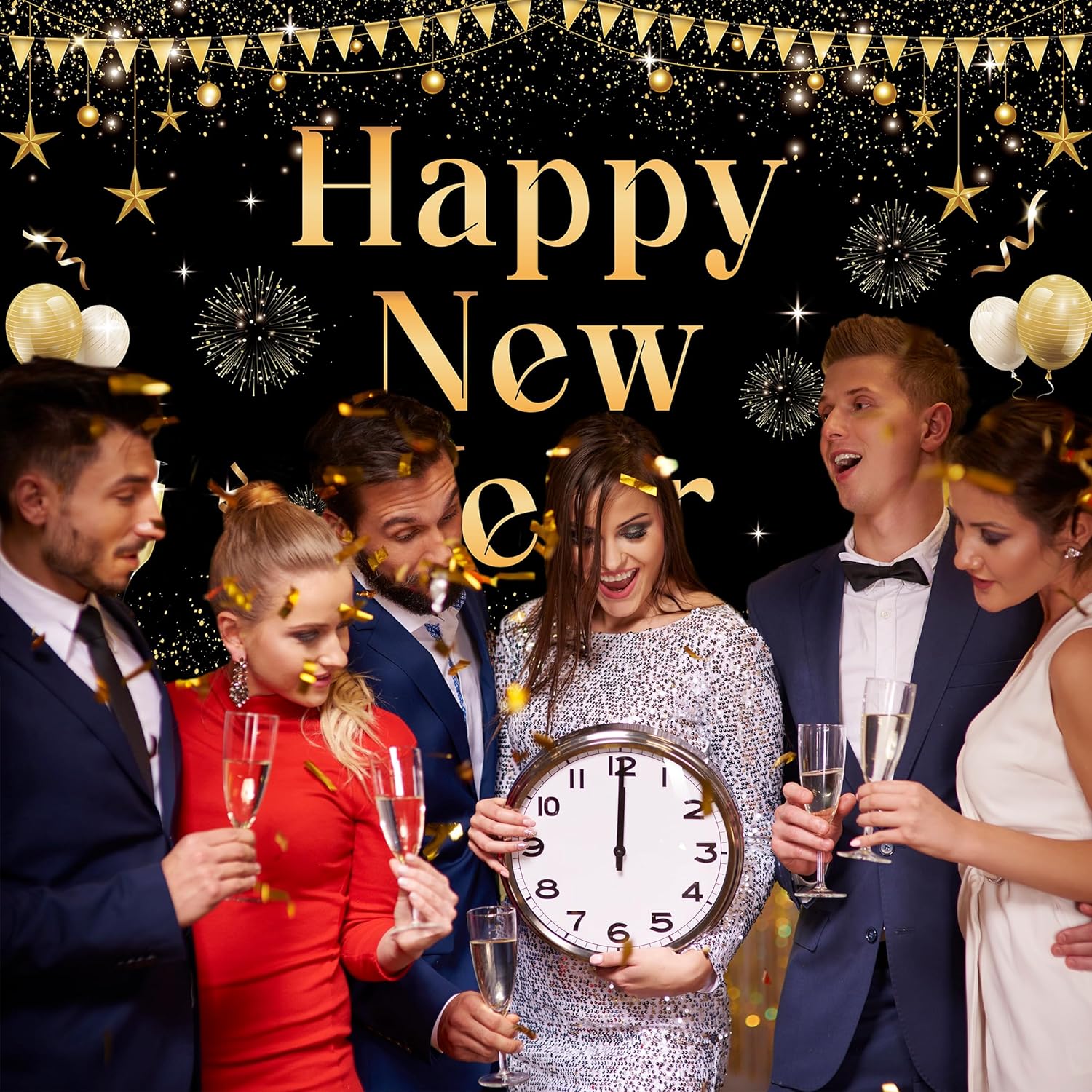 DURABLE MATERIAL – The polyester material is strong and durable to ensure that it will not deform or break, so the new years backdrop can be used many times. We also added a finished edge to give it the perfect look.