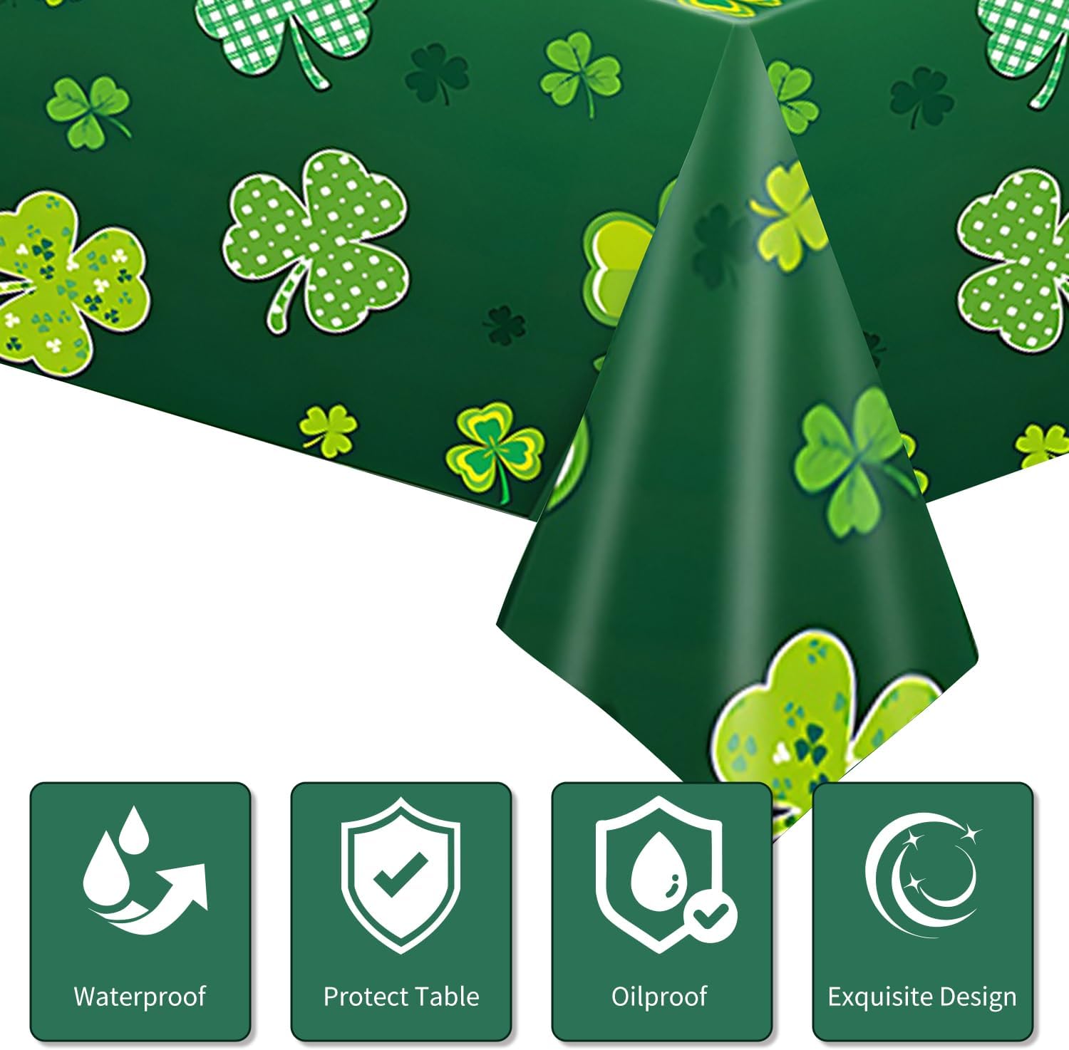 Lucky green shamrock table cover will liven up your party decorations, nice for family dining tables, banquet tables, and buffet tables, picnic tables, display tables etc.