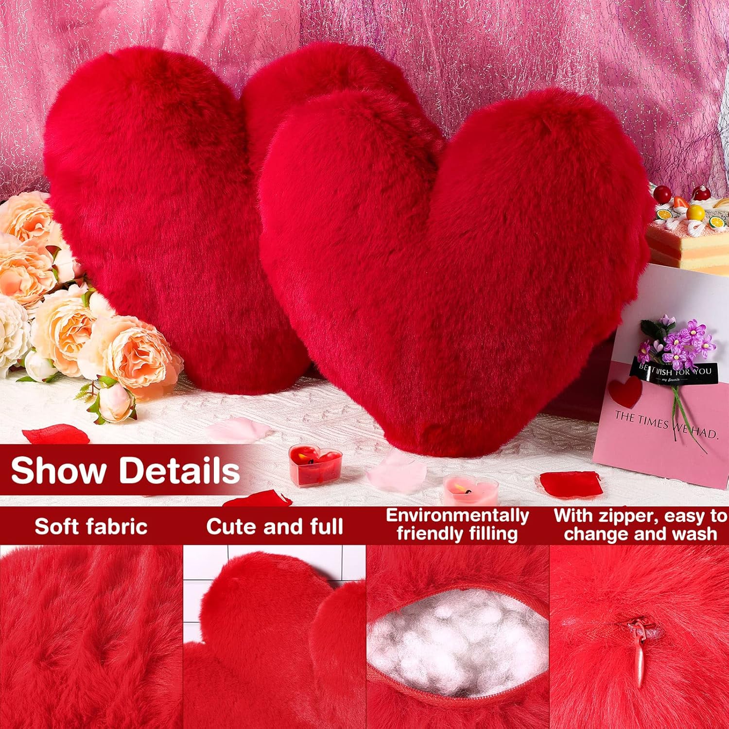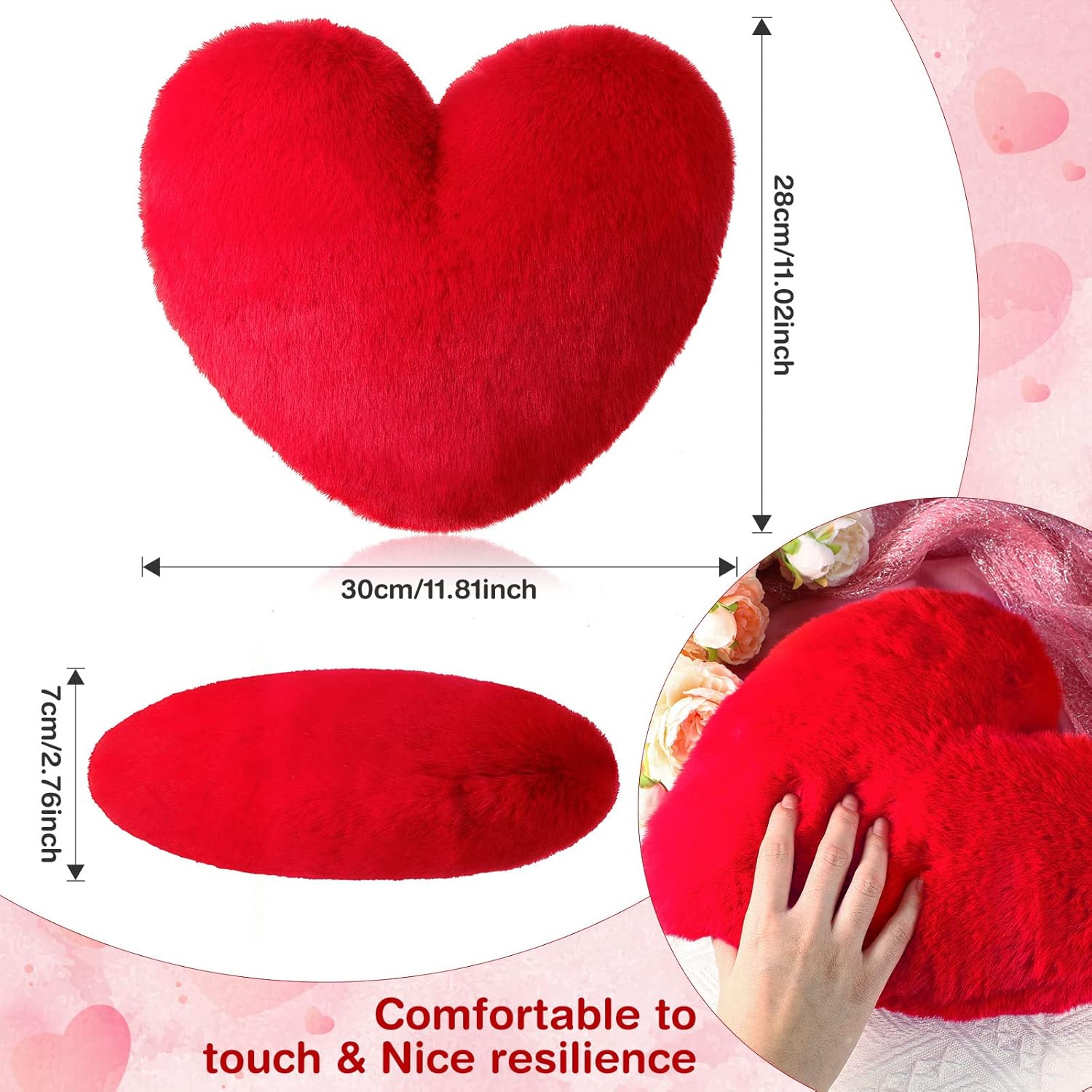 Appropriate Size: the heart shaped pillows are designed with ideal size, appropriate for you in daily life; Tips: during transportation, the volume will be compressed, and the fluffy state can be restored by tapping after receiving the pillows