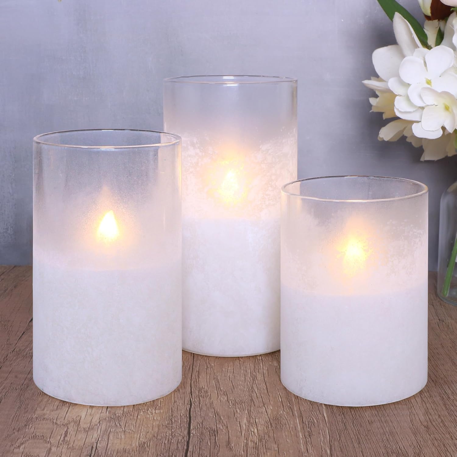 Hand-sandblasted Design: The white sandblasted glass shell creates a sophisticated frosted look, while the LED light simulates the warm glow of a real candle. Because these flameless candles are hand-sandblasted, the color of each set is unique.