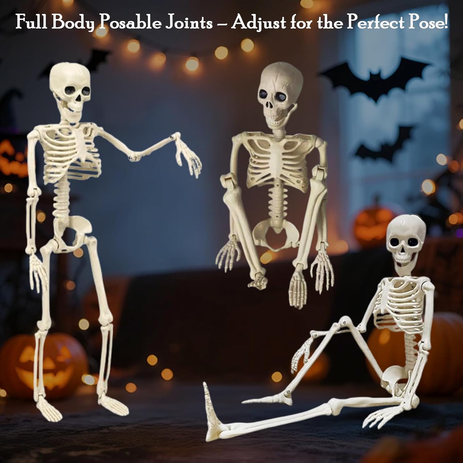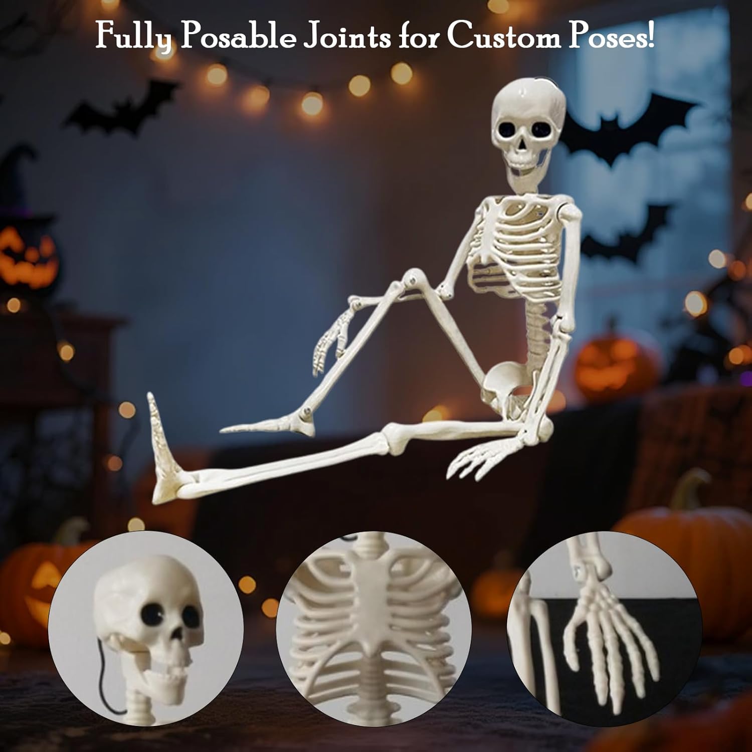Standard size: As a full body posable skeleton, each skeleton is about 16 in/ 40 cm high, and the size is realistic. The overall design fits the Halloween horror theme style and is easy to integrate into various layout scenes