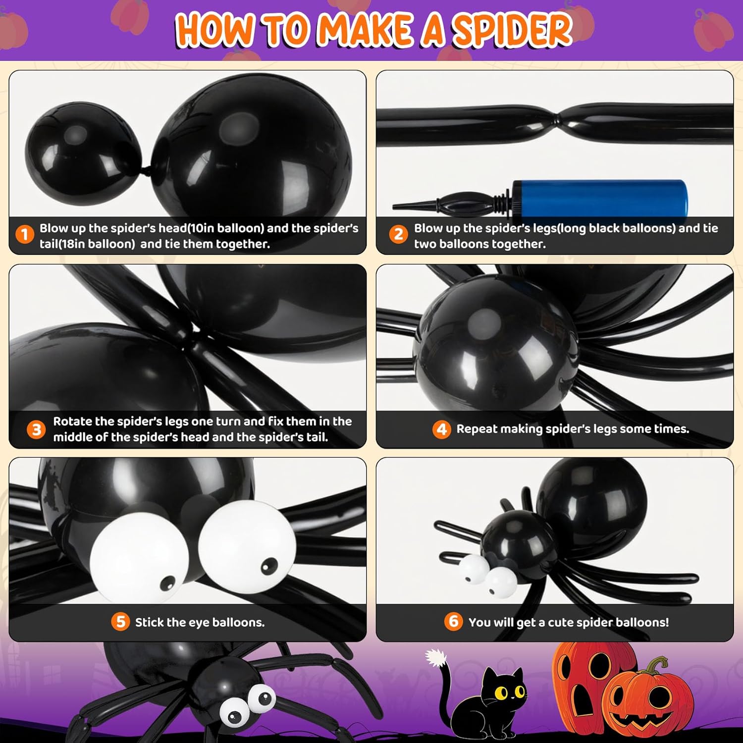 Festive Halloween Design: The Halloween balloons are designed with spider webs, bat, witch, using orange, black, and purple as Palette for the theme, making it great for creating a scary and fun atmosphere, leaving unforgettable memory for your guests
