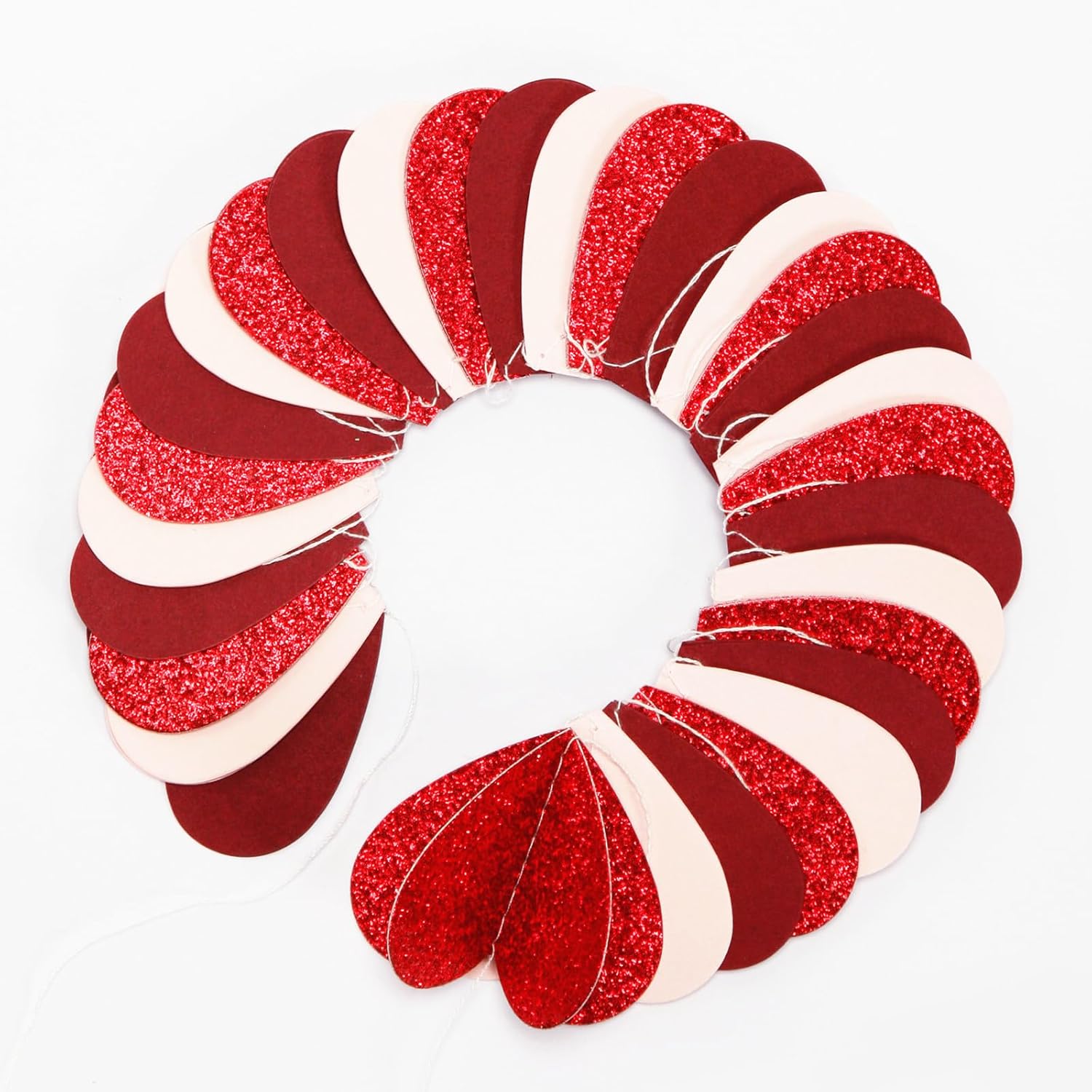 【Material】The heart is 2 dayers paper, please open them so they can have the 3D effect. The material is eco-friendly pink burgundy red paper.You can cut to any length you want if you need shorter length.The hearts are cut very neatly.