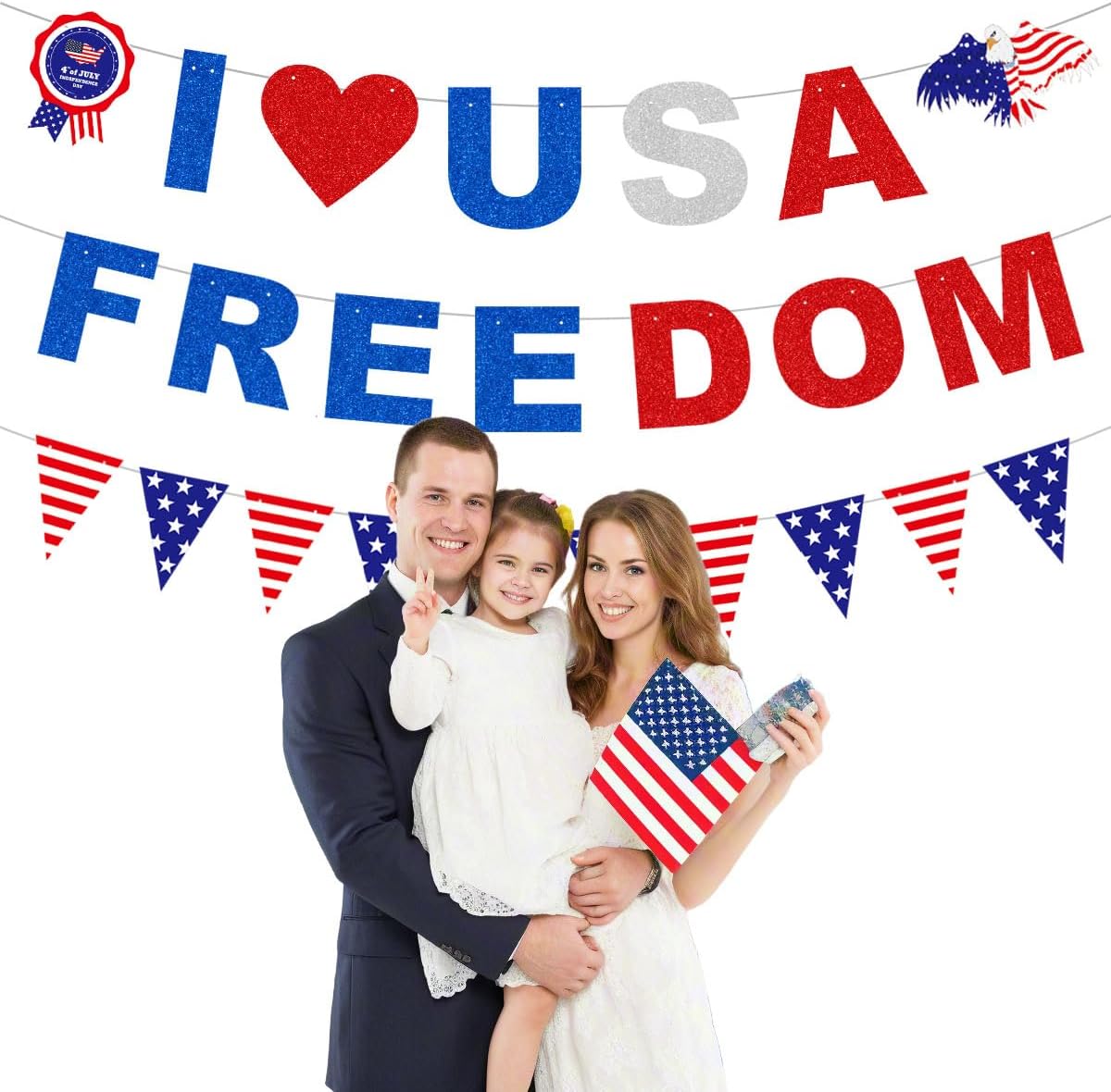 Veterans Day Decorations Banner, NO DIY Pre-Assembly Memorial Day Glitter Letter Backdrop, Independence Day Party Decor Supply, Patriotic Themed Banner Freedom